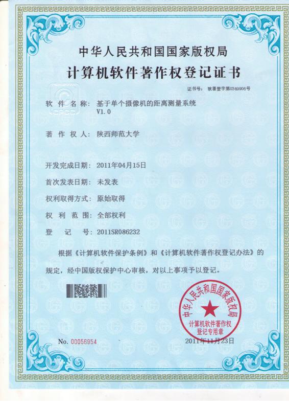 软件著作权-基于单个摄像机的距离测量系统