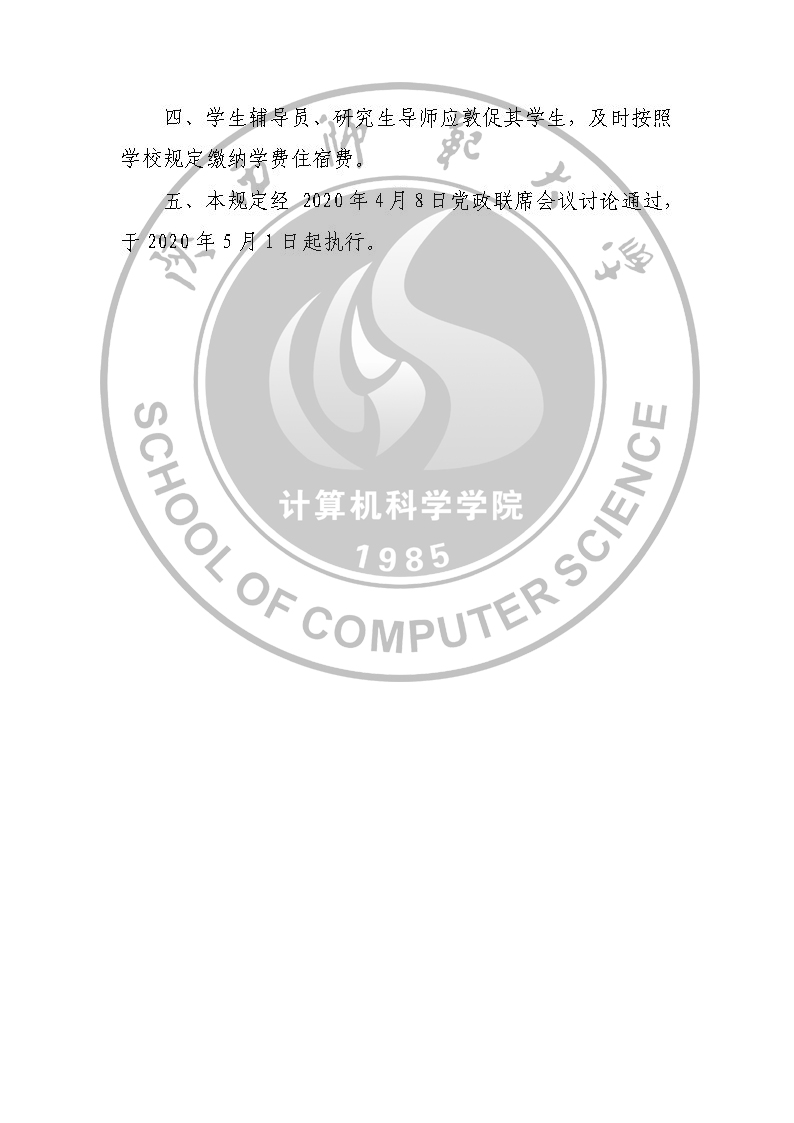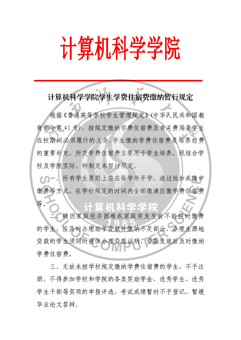 计算机科学学院学生学费住宿费缴纳暂行规定