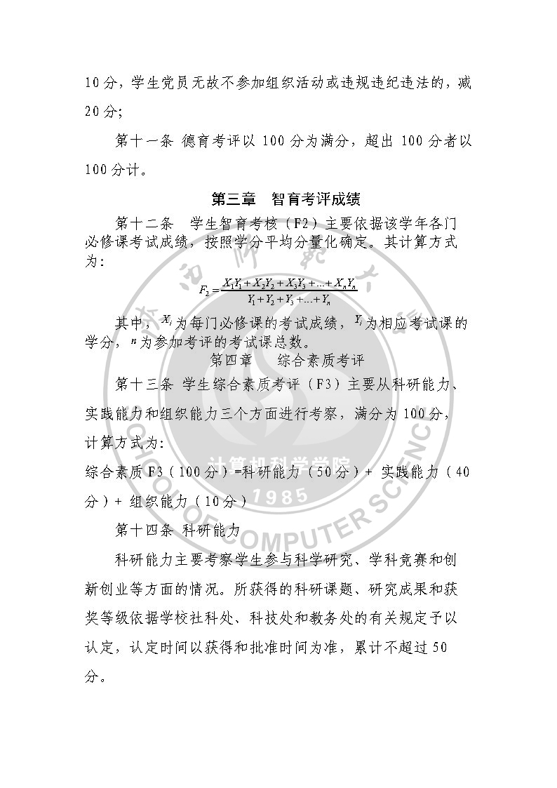 计算机科学学院学生综合考评实施细则