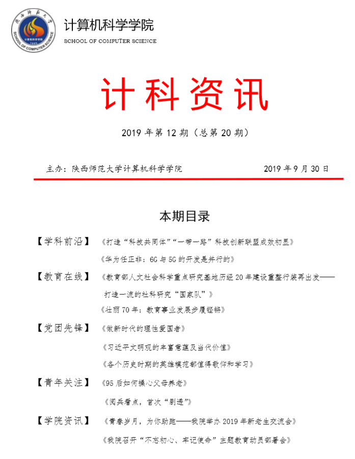 《计科资讯》是肉漫画 编辑整理的电子资讯,信息来源为《光明日报》《人民日报》《中国青年报》等权威纸媒,编辑工作由学院优秀本科生党员、团员承担。《计科资讯》主要包括学科前沿、教育在线、党团先锋、青年关注及学院资讯五个版块。学院师生可以从中了解到专业前沿和国家时政大事,欢迎大家下载阅读。