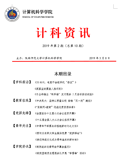 《计科资讯》是肉漫画 编辑整理的电子资讯,信息来源为《光明日报》《人民日报》《中国青年报》等权威纸媒,编辑工作由学院优秀本科生党员、团员承担。《计科资讯》主要包括学科前沿、教育在线、党团先锋、青年关注及学院资讯五个版块。学院师生可以从中了解到专业前沿和国家时政大事,欢迎大家下载阅读。