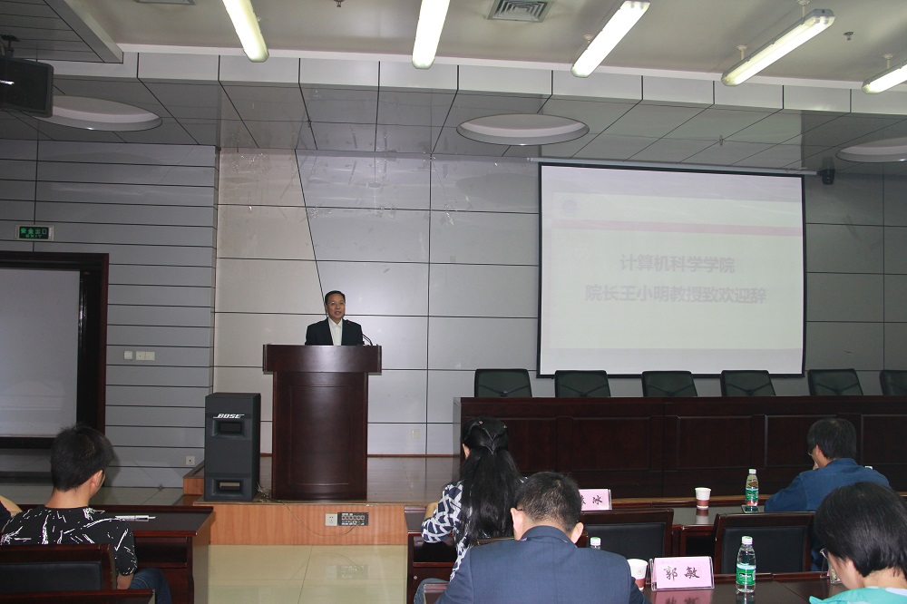 王小明院长代表学院对新生的到来表示衷心的祝贺和热忱的欢迎。他介绍了学院师资队伍及学术研究等概况,并对同学们提出三个要求:一是加强自身素质修养,特别是思想修养,当锐意进取、志存高远、提前规划;二是培养文化意识,当今机器学习、人工智能等计算机信息技术的蓬勃发展,学院也有广泛的专业文化介绍,不仅要了解自己导师和研究方向,也应了解学院文化历史,当多方面学习和提高;三是尊师重教,应多向学院老师学习,多做学术交流,开阔视野,除导师之外,学院其他老师都将为同学们敞开大门,欢迎同学们请教问题、交流经验。