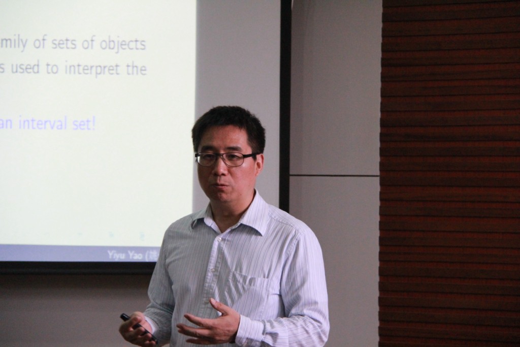 Yiyu Yao教授首先向我们做了题为《Interval Sets and Interval-Set Algebras for Concept Analysis》的报告。Yao教授首先介绍了区间集及区间集代数的有关概念以及其在相关领域的应用。接着以此为基础详细阐述了区间集及区间集代数方面新的结论。最后针对基于包含序和信息序的区间集代数方面有关的研究做了总结。