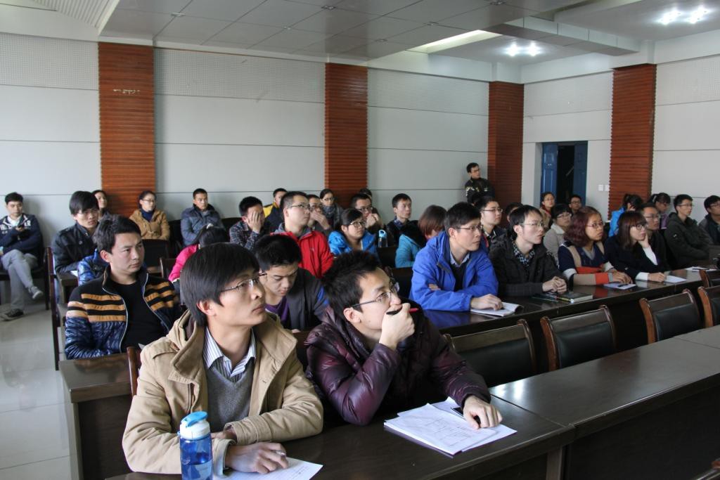部分教师、博士研究生,以及2012级、2013级硕士研究生也参加了本次报告。 陈勇教授首先为我们做了题为《PEDBellII: A Maple package for the integrability of KdV-type equations》的报告。陈教授首先讲述了Bell多项式的发展历史及其在国内外的研究现状,同时介绍了Bell多项式和可积系统的关联,进而引出其程序化的可能。之后陈教授以“kdv,mkdv”等四种方程为例进行现场的程序演示,让我们真切的感受到复杂的数学问题如何通过编程而高效快速的得以解决。 范恩贵教授接着做了题为《可积系统领域的三个新的研究方向和新进展》的报告。报告中范教授围绕“方程族的代数几何解”、“Ricmann-Hilbert方法及应用”和“正交多项式和随机矩阵”三个问题展开讲解。针对每一部分,范教授向我们介绍问题的发展过程及研究领域的代表人物,接着向我们详细讲解了问题解决的具体流程和相关的概念及所用工具,最后指出待解决的问题以及目前自己所做的工作。 报告最后,姚老师对本次报告作了总结,并再次对两位教授的精彩报告表示感谢,报告会在一片热烈的掌声中圆满结束! 华东师范大学陈勇教授做学术报告 复旦大学范恩贵教授做学术报告 |