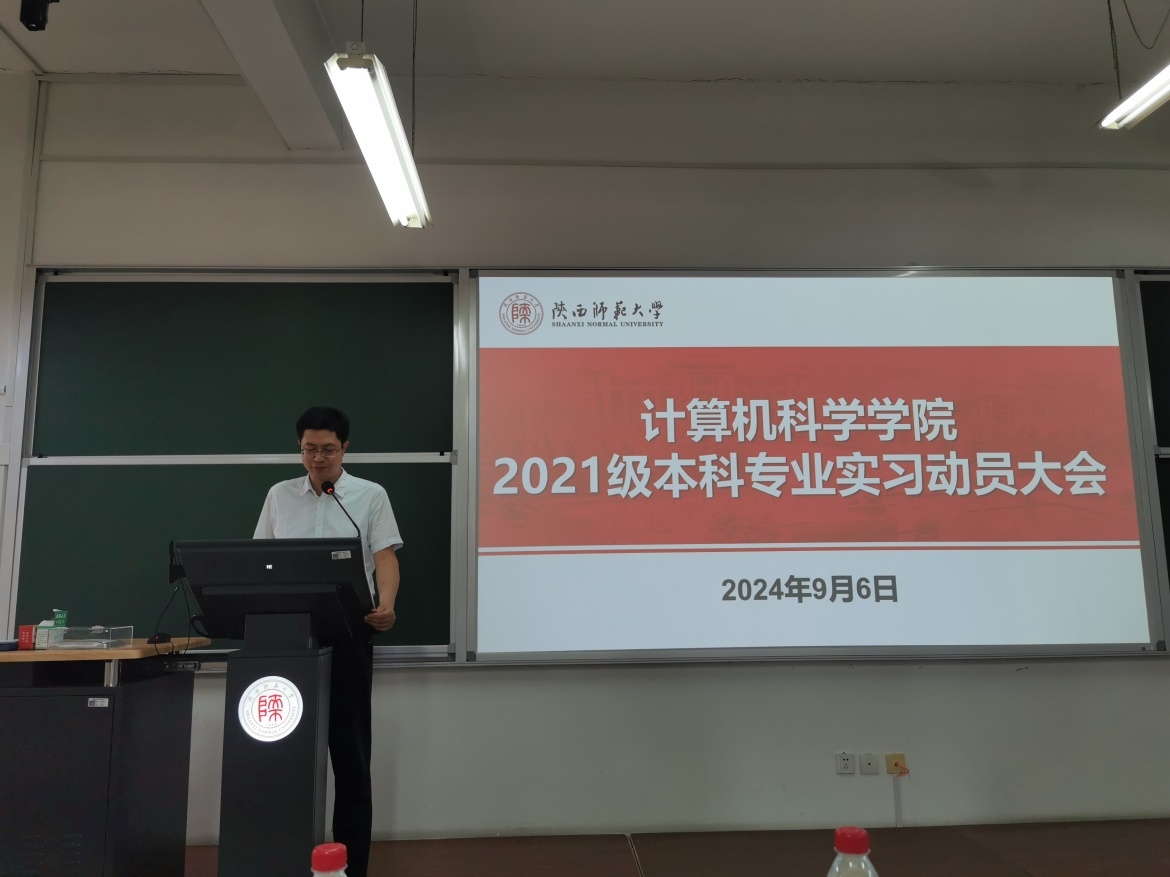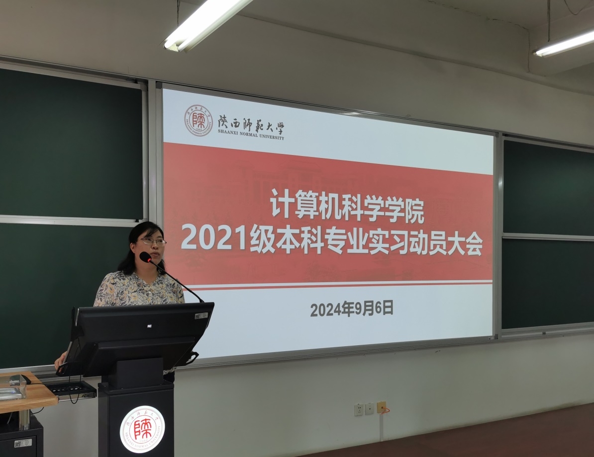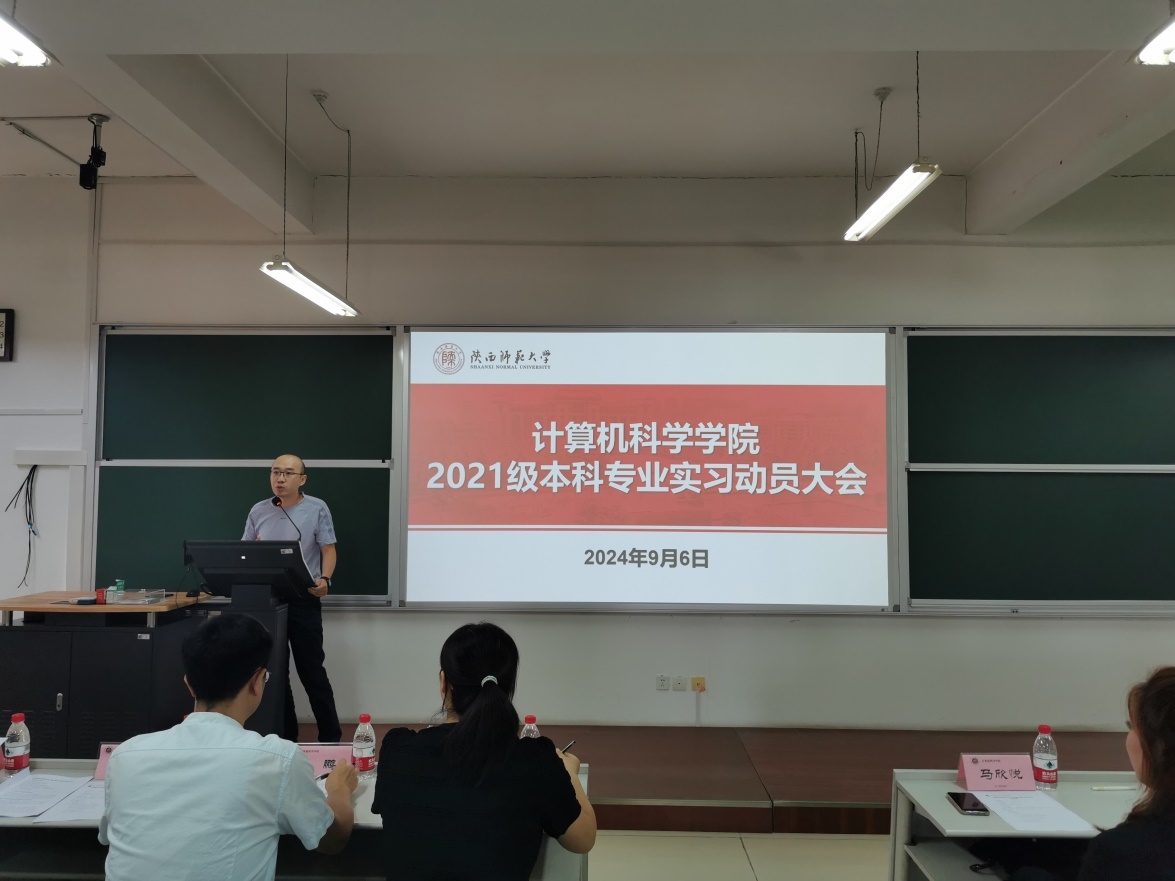 2021级专业实习动员大会在文津楼3623顺利召开,出席会议的有教学副院长李鹏,党委副书记郭康凌,实习带队老师任杰、任美睿、代才、何雪莉、李志强,实习公司代表马欣悦,非师范班班主任王艳娥,教学秘书杨婷,以及2021级全体非师范生,会议由辅导员刘中央主持。