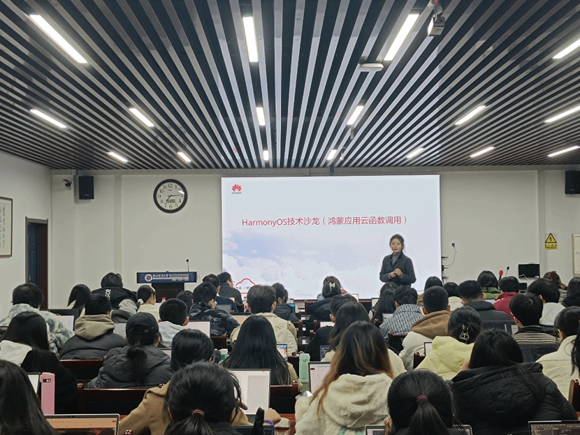 2025年1月14日晚,华为技术有限公司在计算机科学学院3425报告厅为2022级计算机科学与技术(创新实验班)及软件工程专业学生举办了一场华为云Harmony OS应用开发技术培训沙龙。本次活动由学院软件工程课程群团队负责人李志强和2022级辅导员田海东具体组织,由华为技术有限公司客户经理唐凯辉、鸿蒙技术讲师任奕燃主讲培训,共吸引了50余名学生积极参与。