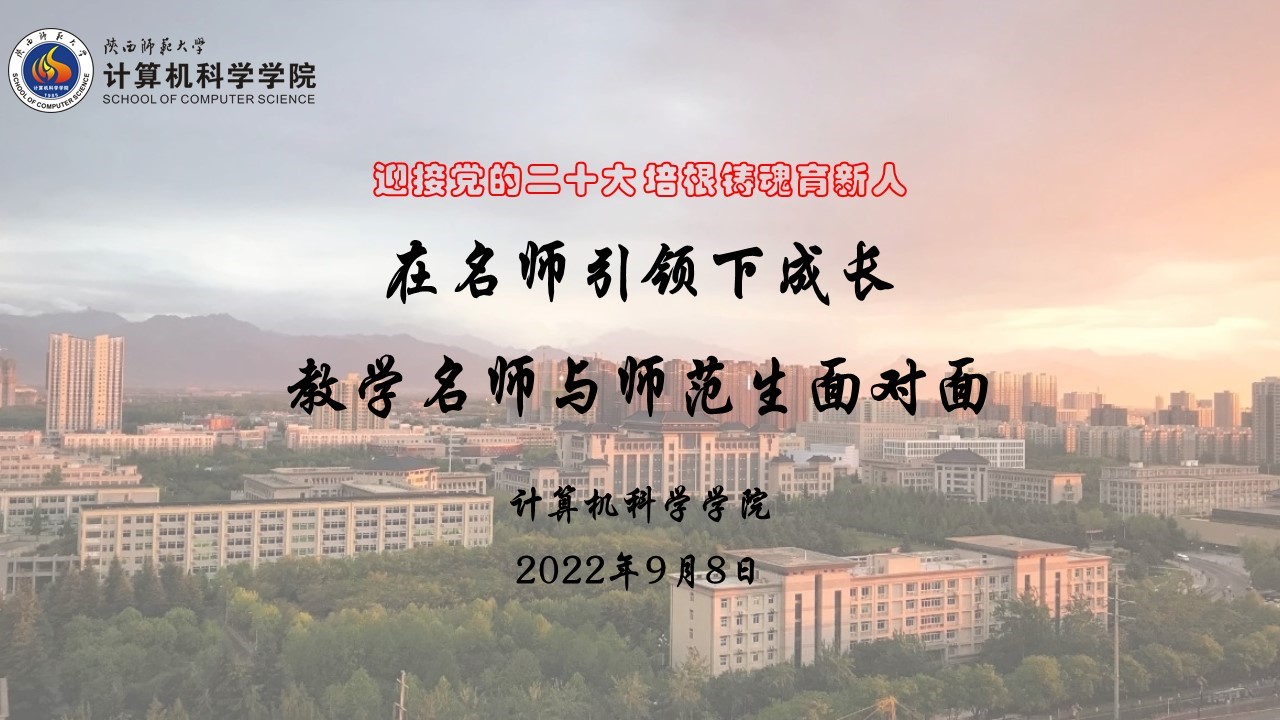 于2022年9月8日19:00-21:00在线上举办了“在名师引领下成长:教学名师与师范生面对面”交流活动,本次活动主题为“迎接党的二十大,培根铸魂育新人”。活动特别邀请了来自基础教育一线的高级教师,包括西电中学的王煜老师、曲江一中的冯超老师、莲湖教师进修学校的李南颖老师和和高新一中的韩恭恩老师。本次活动由肉漫画