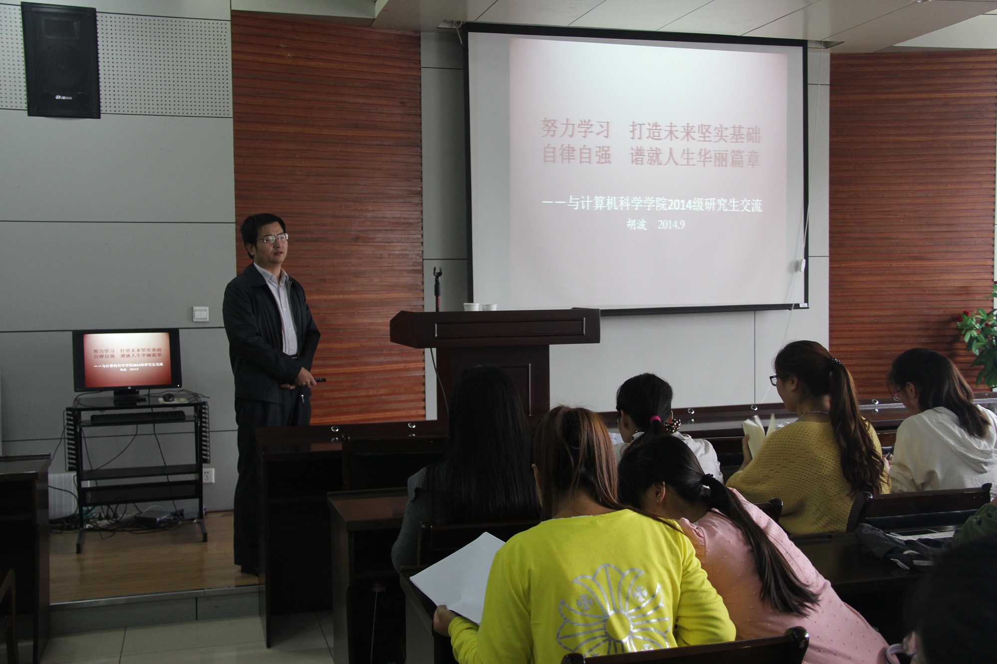 9月16日下午3点,肉漫画 2014年研究生新生入学教育报告继续举行。计科院党委书记胡波老师做了题为“努力学习,打造未来坚实基础;自律自强,谱就人生华丽篇章”的报告。报告中,胡波老师从何为研究生,研究生与本科生的区别,学习成本,学习榜样几个角度向新一级研究生介绍了读研的主要目标,研究生期间的学习之道,以及读研期间所需的付出,并鼓励同学们以施一公等知名人物为榜样,心怀远大目标,保持恒心。