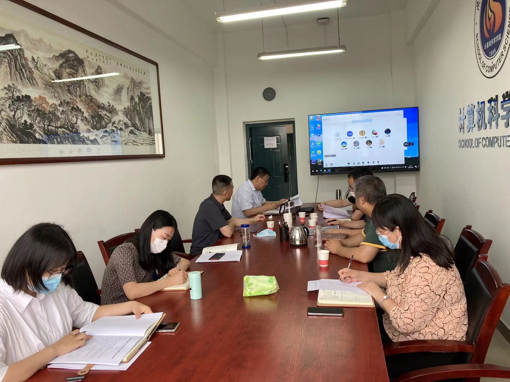 接着,在两位支委的带领下,同志们一起学习了习近平总书记在庆祝中国共产主义青年团成立100周年大会上的重要讲话。最后,由赵铎和毛庆同志分别为大家解读学校近期关于疫情防控工作的通知和疫情防控指导手册。