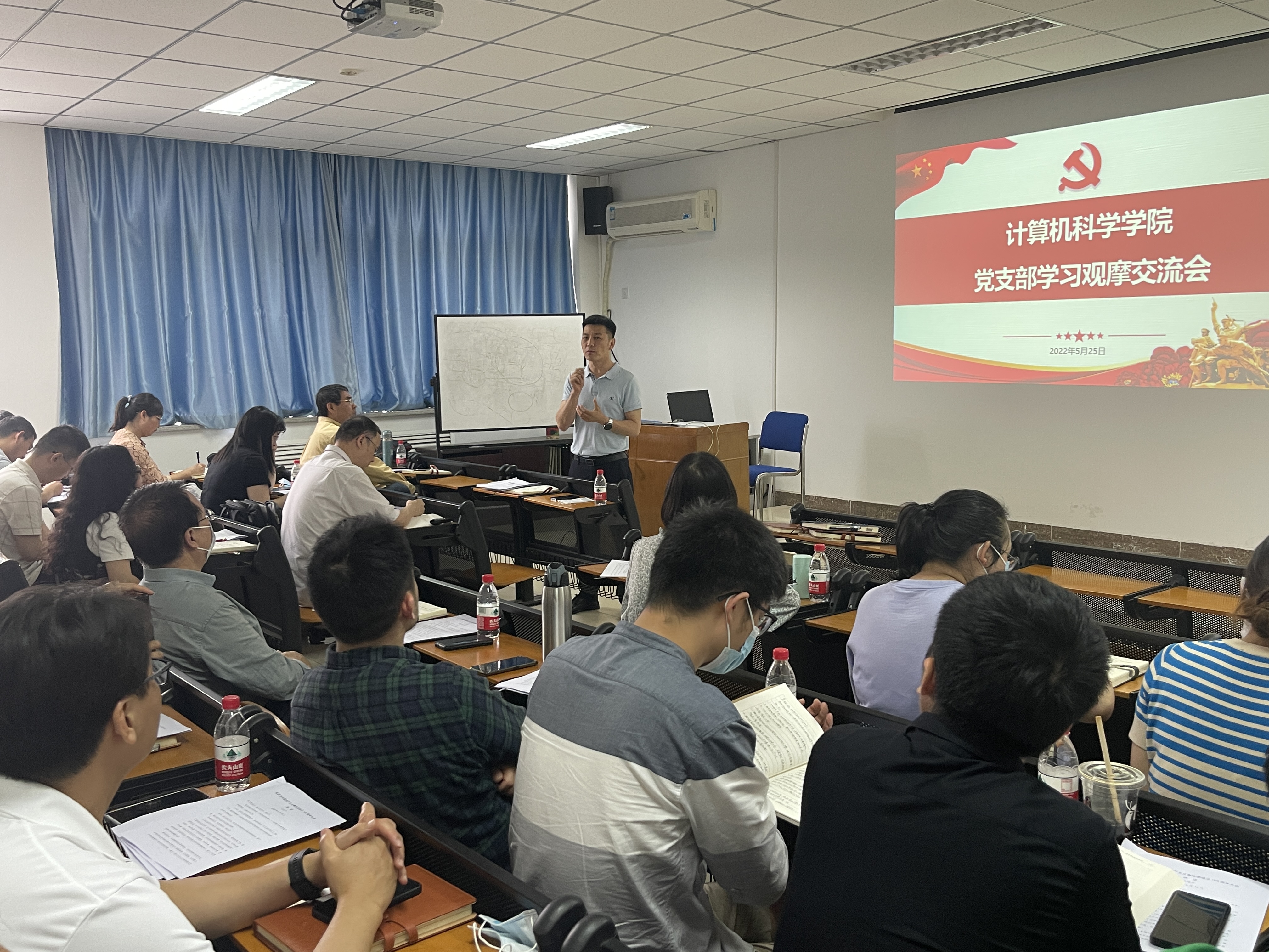在文津楼3524研讨室开展了“计算机科学学院党支部学习观摩交流会”第一场,学院党委书记王耀明、副书记郭康凌、各师生党支部书记和支委,共同观摩了肉漫画
