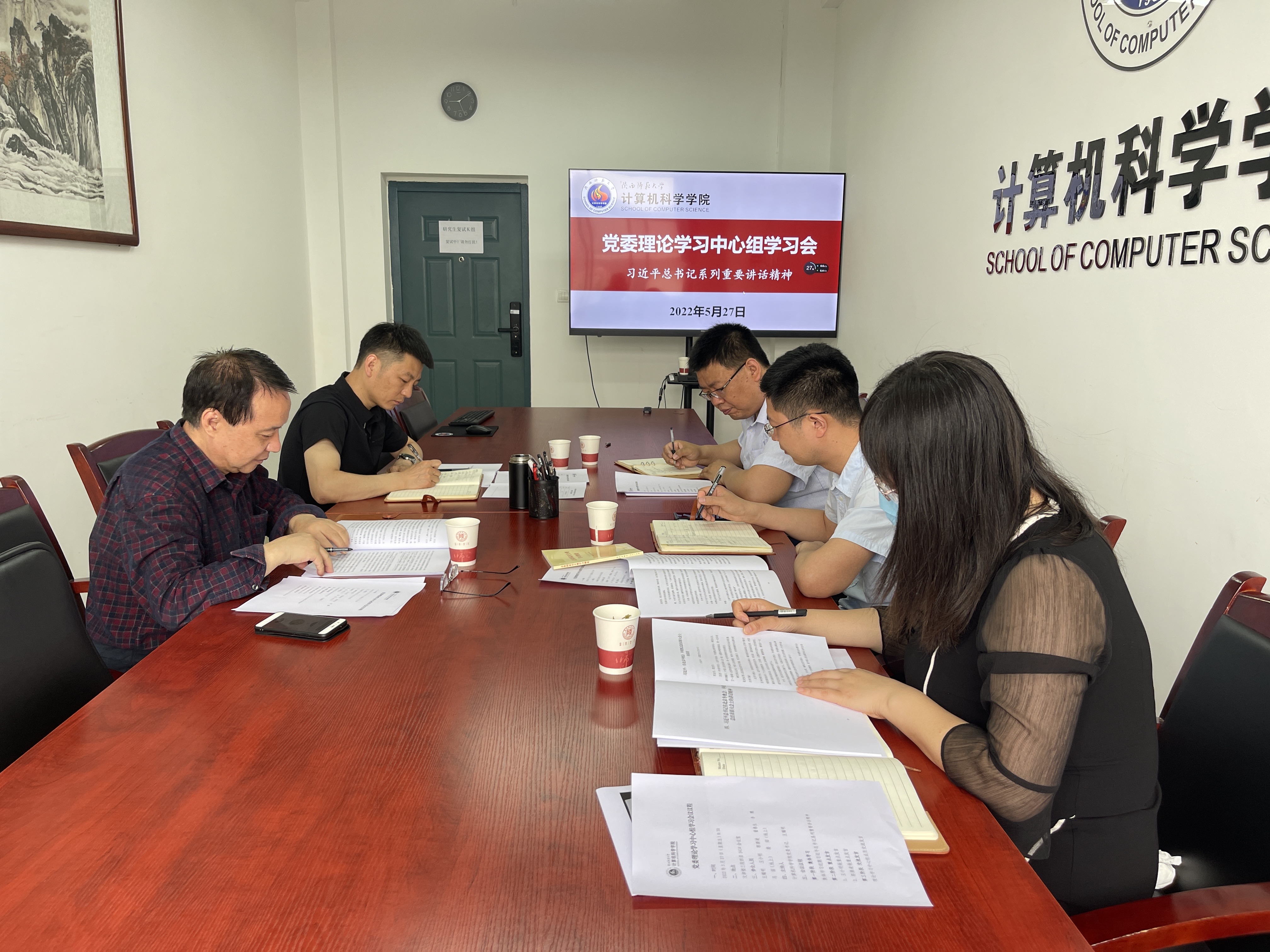 在长安校区文津楼3434会议室召开党委理论学习中心组学习会议,学习近期习近平总书记系列重要讲话精神,学院班子成员参加了会议。会议由学院党委书记王耀明主持。
