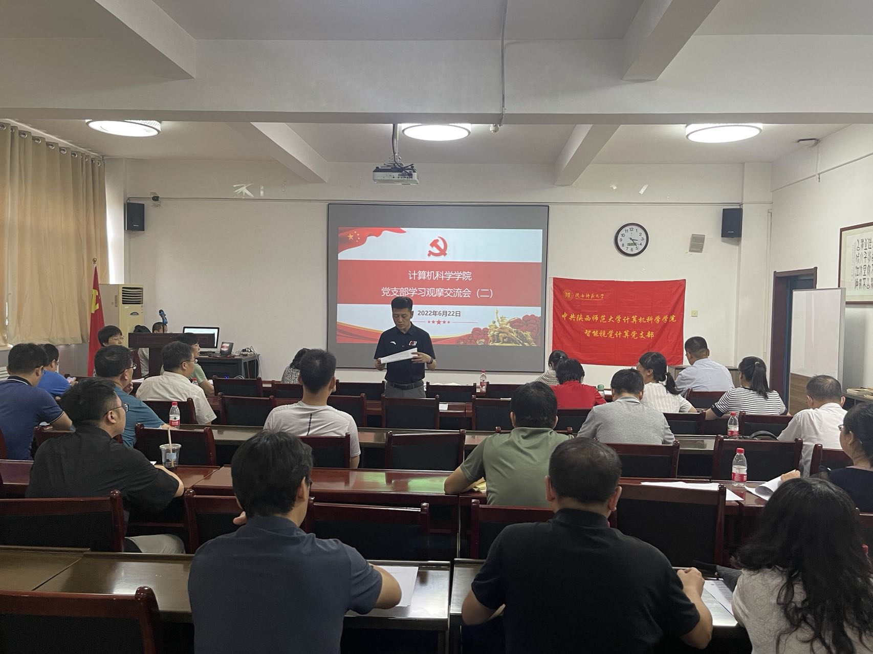 在文津楼3412报告厅开展了“计算机科学学院党支部学习观摩系列活动”第二场,学院党委书记王耀明、副书记郭康凌、各师生党支部书记和支委,共同观摩了智能视觉计算党支部主题党日活动,活动由党支部书记汪西莉主持。