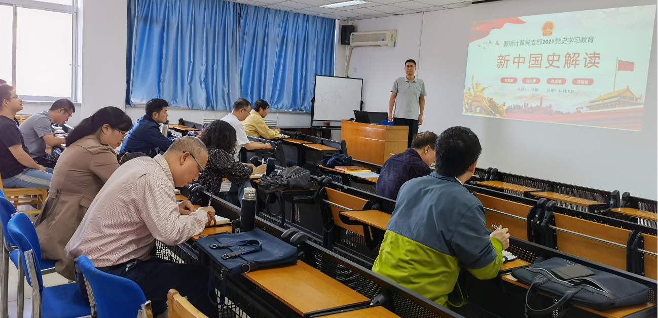 2021年9月29日下午,计算机科学学院李鹏副院长以“新中国史解读”为主题,为普适计算支部讲党课,指导支部开展党史学习教育。