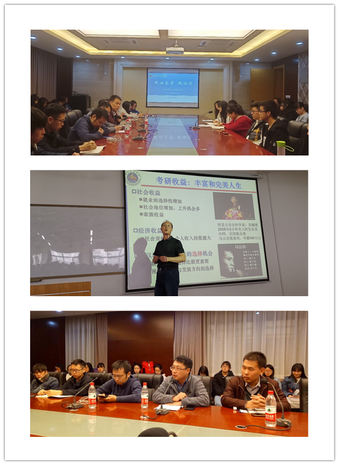 ——“促”,考研宣传动员提早启动。2018年底,学院就启动就业指导月,为2020届本科生建立成长发展档案,辅导员面向非师范班级学生开展人生规划问卷摸底,根据学生填报意向进行分类督促指导,鼓励学生建立考研复习的目标,帮助学生从思想上加强紧迫意识,制定学习计划,对自身有客观认识,对考研形势有准确了解。