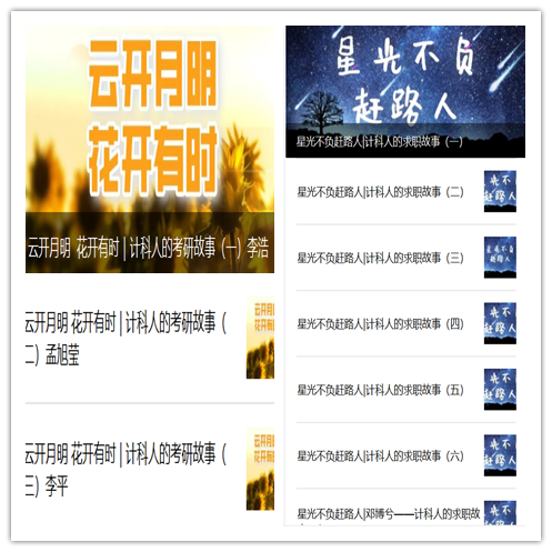 ——“传”,朋辈经验及时传递。建立健全往届学生考研去向数据库,为升学录取的学生制作专题宣传板,发挥引领示范作用;举办考研经验交流会,实现考研技巧方法及心得体会在各年级间的顺畅流通,向低年级学生介绍心得经验;学院官微、官网推送《云开月明·花开有时——计科人的考研故事》《星光不负赶路人——计科人的求职故事》,为还在争取调剂的同学和下一届2021届考研学子介绍复习经验、面试技巧,为考研成功打下了坚实的基础。