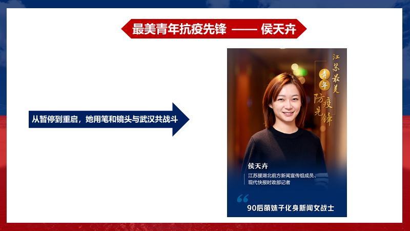 不论是中国近代历史上,此次抗疫奋战中,还是就在我们的身边都有许多人身体力行地践行着五四精神,成为了更多青年人的榜样。范佳丽、黄思铭、陈慧洁三位同志分别以抗战女英雄秋瑾—“祖国陆沉人有责,天涯漂泊我无家”、抗议先锋青年记者侯天卉—“从暂停到重启,她用笔和镜头与武汉共战斗”、我校优秀研究生学姐戴昶—“内心柔软,意志坚强,纯真如昔”为题向支部介绍了自己的榜样人物。紧接着,钟茜同志分享了大学生党员在疫情期间提升自我和帮助他人的具体途径,在优秀青年榜样的鼓舞下,学生党员也应该了解更多可以做到的实事,脚踏实地为人民服务。全体同志在活动的最后共同立下目标,并承诺认真完成。