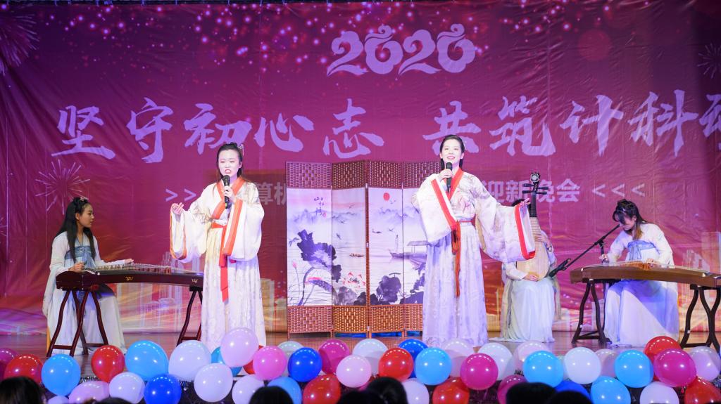 歌伴舞《祖国》以优美的舞姿和悠扬的歌声,为祖国发声,唱出了计科学子的心中热忱。古韵悠悠的合奏朗诵《春江花月夜》,让全场观众沉浸在江潮连海,月共潮生的诗情画意中,遐想连篇。歌曲串烧《少年追梦》,高歌一路荣耀感动,更充满逐梦计科人对未来的无限憧憬与热望。情景剧《恰同学少年》展现了同学们风华正茂的青春热情和奋发向上的坚定意志。