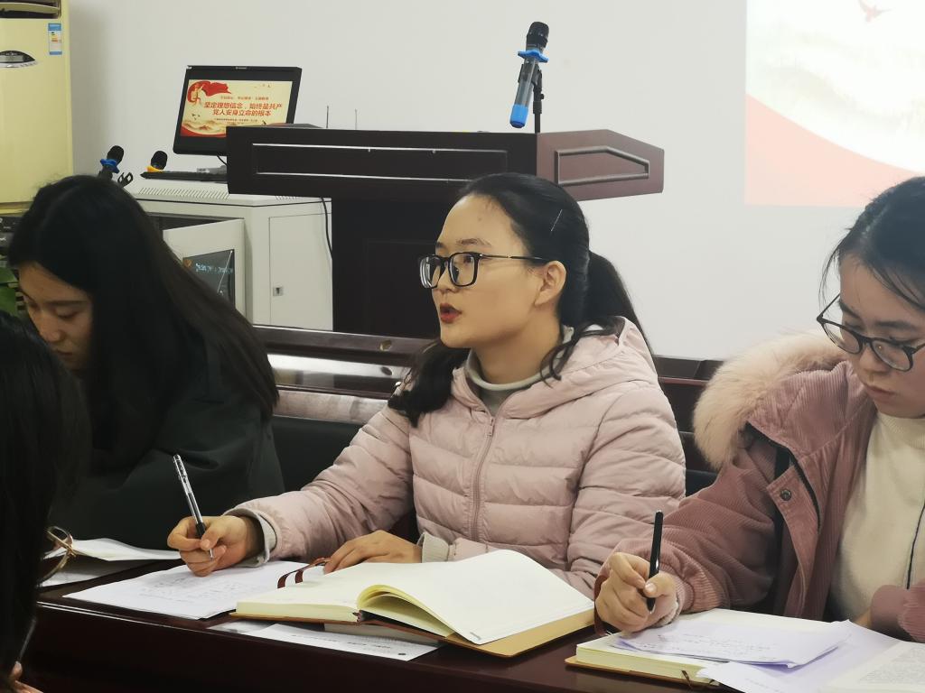 本次学习交流活动以《习近平关于“不忘初心、牢记使命”论述摘编》第四部分《坚定理想信念,始终是共产党人安身立命的根本》为主要内容,结合习近平总书记关于“不忘初心、牢记使命”做出的重要论述进行学习讨论。首先,禹棋洺传达了学校、学院两级党委关于“不忘初心、牢记使命”主题教育的工作安排和会议精神,说明了本次主题教育的重要意义,要求党小组成员贯彻落实“守初心、担使命,找差距、抓落实”的总要求,按时参加组织活动,提高个人政治责任感和历史使命感。其次,党小组负责人禹棋洺和秦可楠同志围绕《坚定理想信念,始终是共产党人安身立命的根本》,结合习近平总书记重要论述带领同志们进行了阅读、学习。随后,党小组同志们针对自己的学习心得和体会进行了热烈的交流探讨。最后,支部组织委员冯苗苗进行总结发言,鼓励大家积极参与党小组学习交流活动,妥善安排好理论学习和专业学习的时间,真正做到理论知识入耳、入脑、入心。