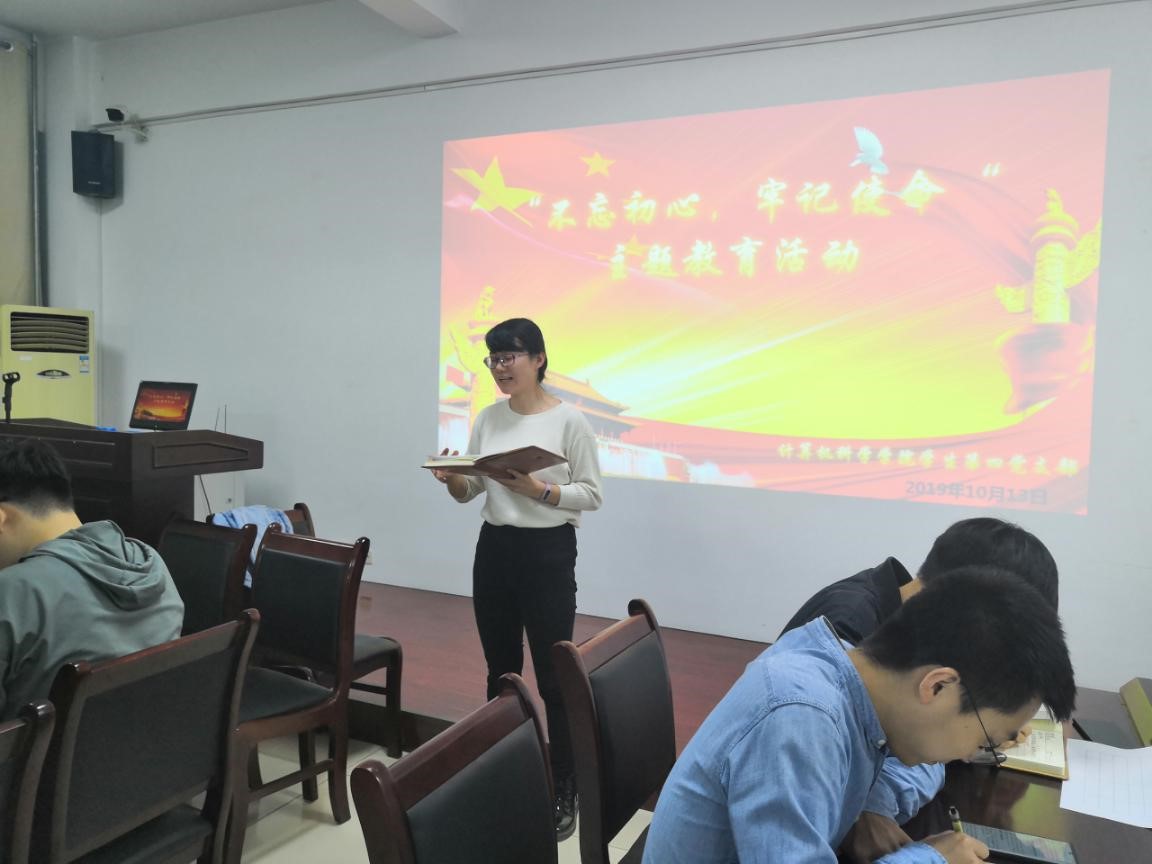 学生第四党支部于学院报告厅开展了 “不忘初心、牢记使命”主题教育学习为主要内容的支部大会。学生第四党支部全体成员参加了会议。会议由支部书记刘亚灵主持。
