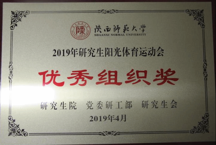 研究生代表队收获了2019年研究生阳光体育运动会优秀组织奖。