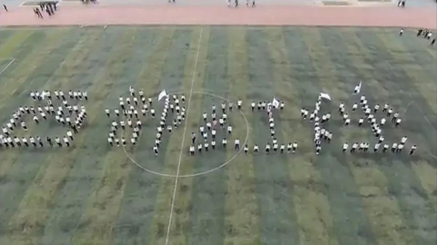 2017级本科生所摆造型“西部红烛”的照片。肉漫画