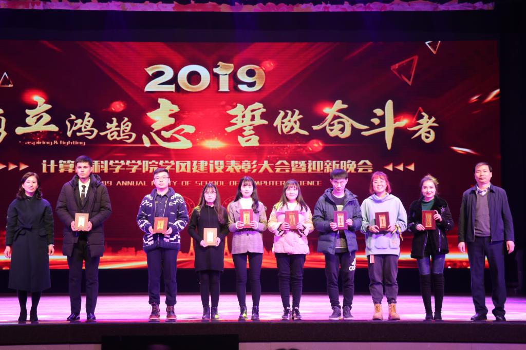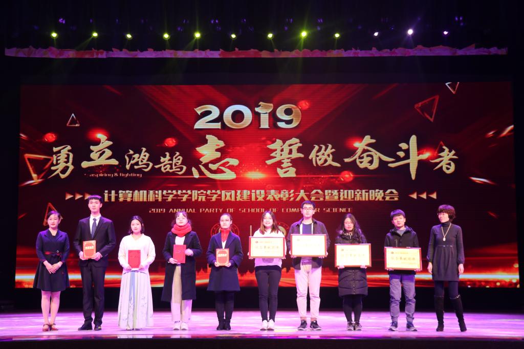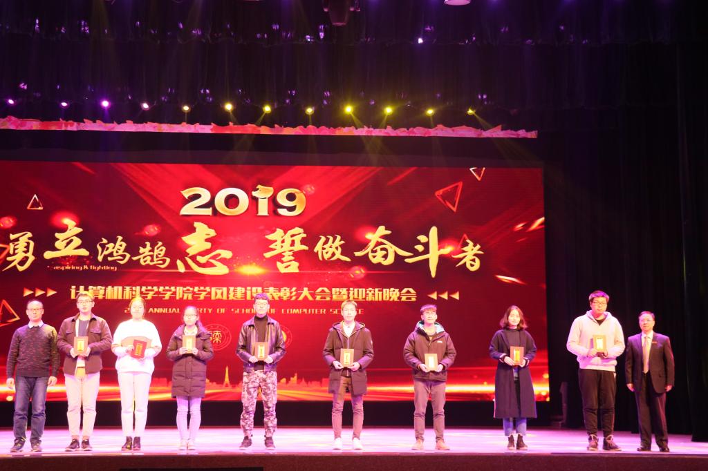 马苗教授宣读了《2017-2018学年计算机科学学院学风建设综合表彰大会表彰决定》。王小明教授、吴振强教授为黄海超、董昊等表现优秀的学术科研标兵代表颁发了证书;黄怀平老师和姚若侠教授为杨思誉、刘星霖等文艺体育标兵代表颁发了荣誉证书;袁冰老师和汪西莉教授为隋丰隆、刘佳华等表现优秀的服务奉献个人以及计算机科学与技术(创新实验班)1501班、蓝精灵志愿服务队、学院肉漫画、马列理论读书社、计算机科学协会等服务奉献团体颁发了荣誉证书与奖牌;董春生老师和毛庆老师为计算机科学与技术(创新实验班)1501班、计算机科学与技术(创新实验班)1601班、计算机科学与技术1602班、计算机类1704班等4个优良学风示范班集体与计算机类1701班团支部、计算机科学与技术1502班团支部、软件工程1502班团支部、计算机科学与技术1702班团支部等4个优秀团支部颁发了奖牌。