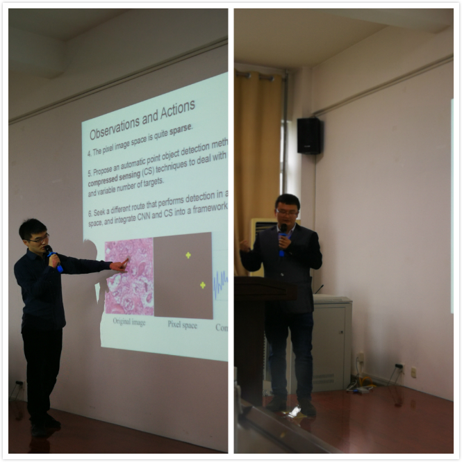 首先来自加拿大阿尔伯塔大学的薛尧博士为大家做了题为“Cell Detection in Microscopy Images using Deep Neural Network and Compressed Sensing”的报告,介绍了他关于细胞生物数据的采集和分析方法;随后悉尼大学的乔永亮博士介绍了通过采集和分析生物图像,对生物性状进行判断的图形图像识别技术揭示了他在图形图像识别和处理中的前沿研究。论坛最后,两位学者并与现场观众进行了互动。