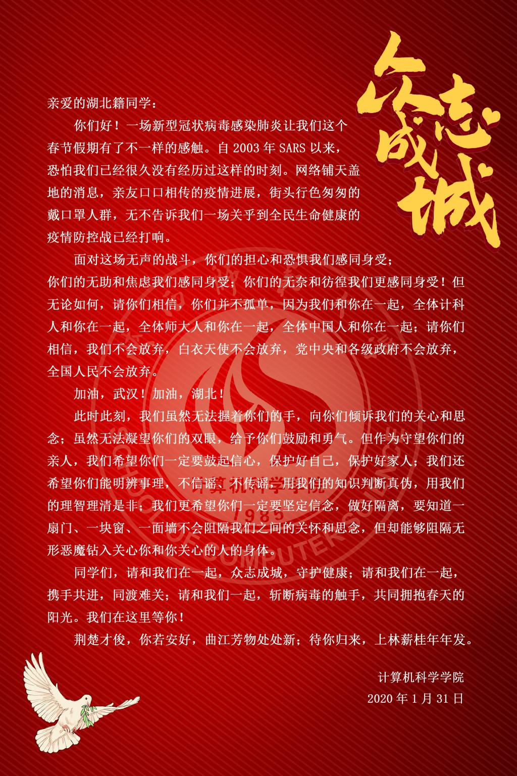 下一篇:计算机科学学院关于做好疫情防控的通知