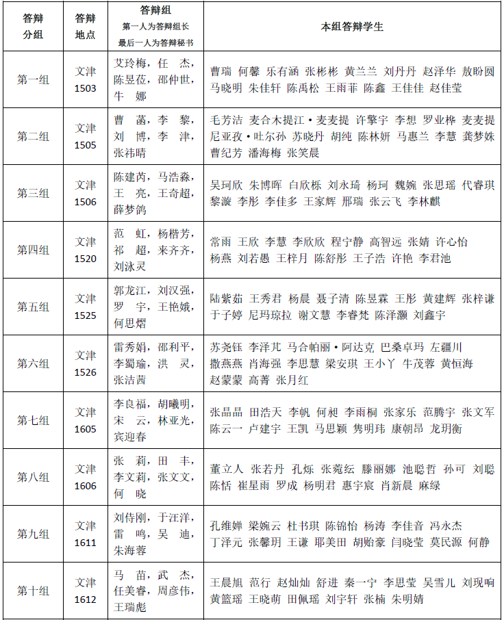 二、答辩时间、分组及地点