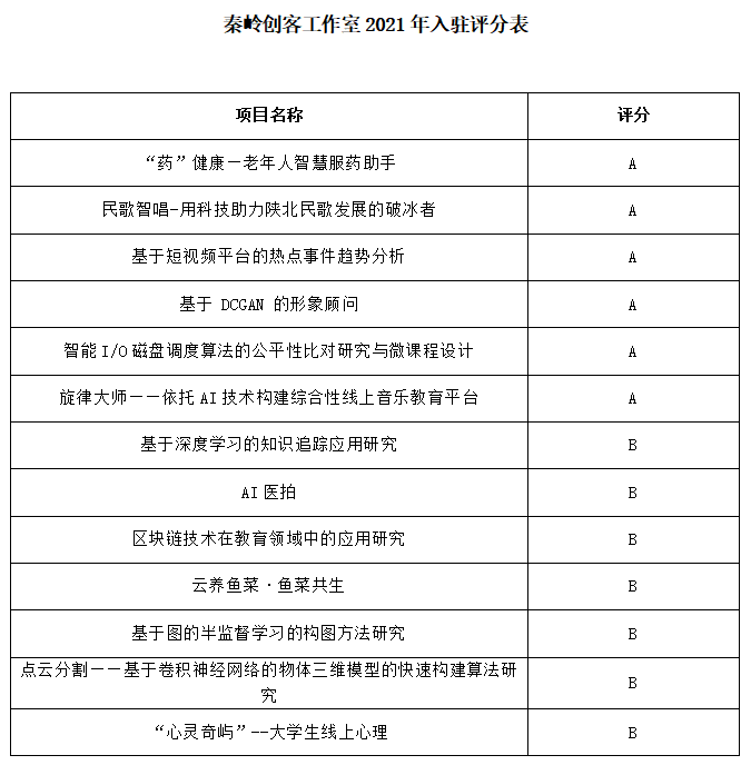肉漫画 于6月23日组织了2021年度秦岭创客工作室入驻项目遴选推荐工作。通过项目组申报答辩、院内专家评审等程序,共遴选出13个项目入驻创客工作室,A类项目6项(入驻文津楼3624),B类项目7项(入驻文津楼4楼创客坊),现将拟推荐项目名单予以公示(详见附表)。推荐项目将于7月5日起入驻秦岭创客工作室,并按照《秦岭创客工作室》入驻指南进行项目培育。