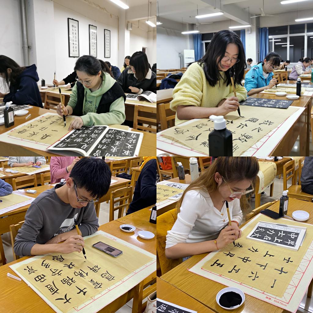研究生《书法鉴赏与实践》线下课程于文津楼1409教室及1418教室开课。本次书法课程共有七十余名研究生同学参与。