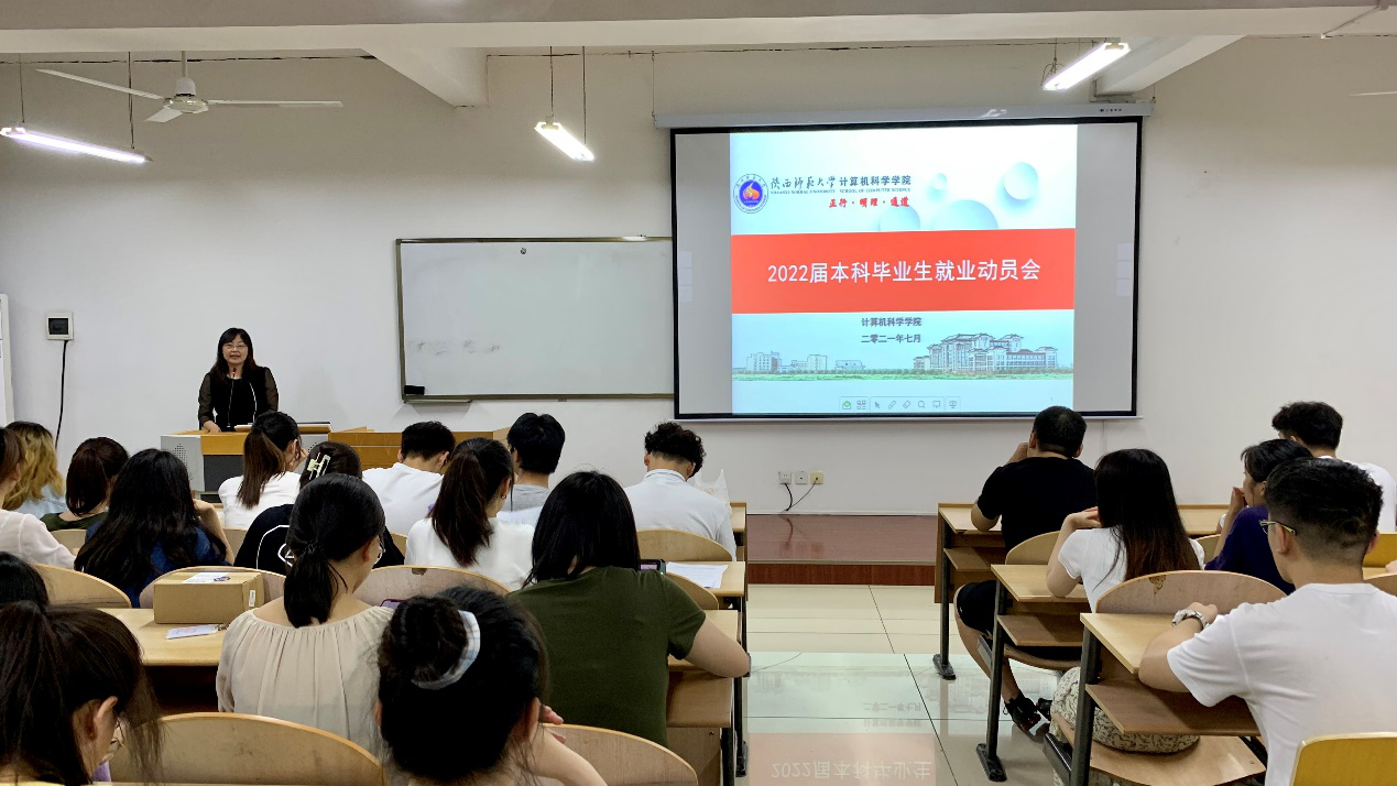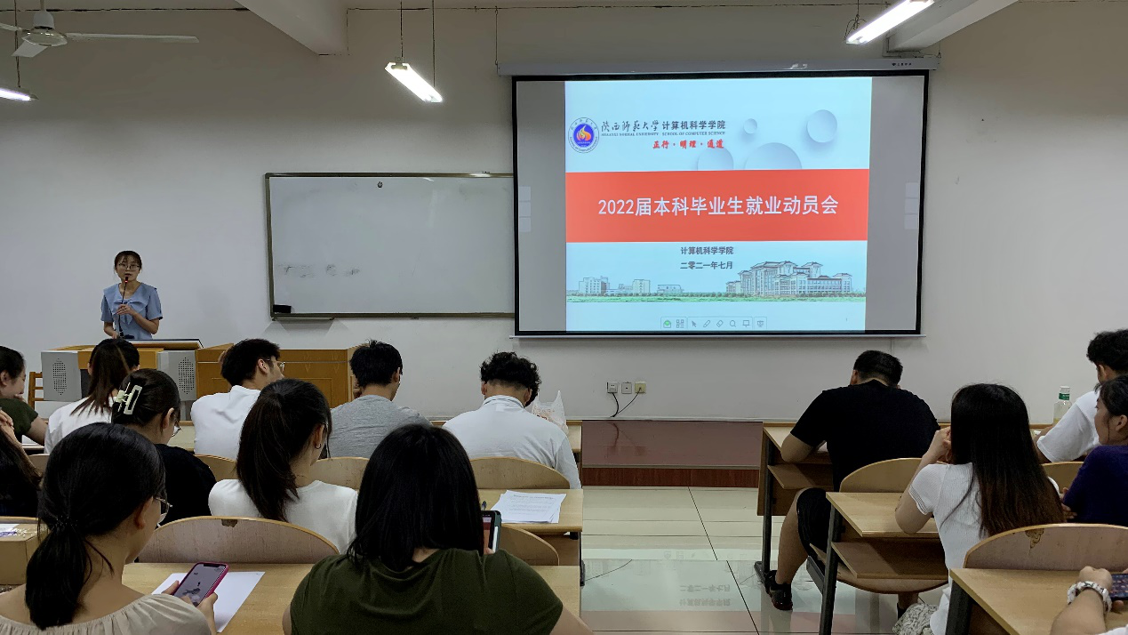在文津楼3121教室举行2022届本科毕业生就业动员会。学院党委副书记郭康凌及2022届全体本科毕业生参加动员会。动员会由2018级本科生辅导员安琪主持。