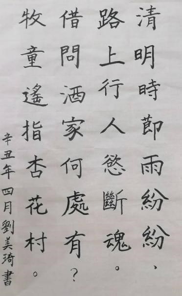 第四期“翰墨书香”书法培训班于2021年4月1日晚在文津楼1503教室开展了“缅怀先烈,传承红色基因”——清明节主题书写活动。