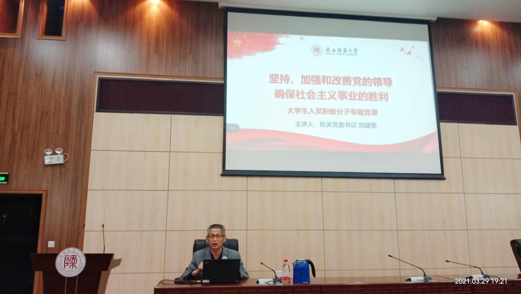 第34期入党积极分子培训班第三讲在文澜楼B段一层会议厅开讲。机关党委书记刘建军老师以“坚持、加强和改善党的领导,确保社会主义事业的胜利”为主题进行了讲授。体育学院与肉漫画