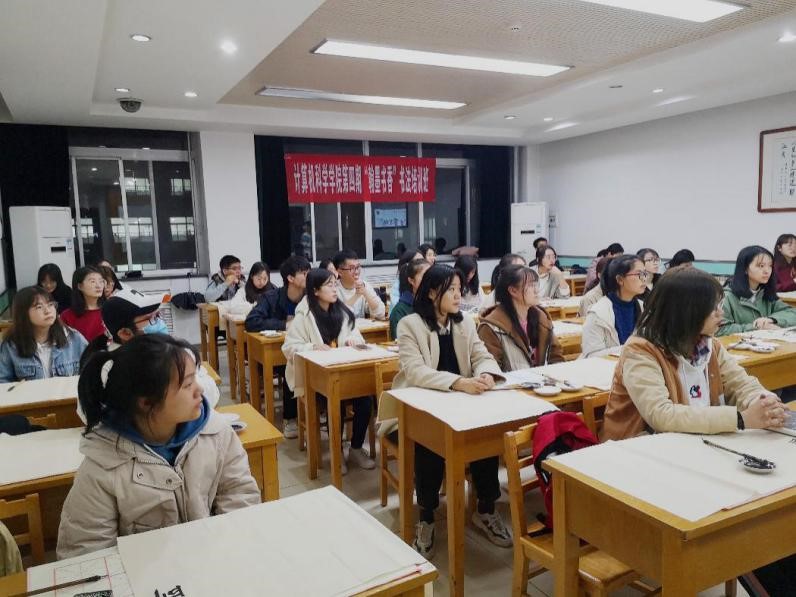 第四期“翰墨书香”书法培训班在文津楼1503正式开班。学院党委副书记袁冰老师及三十余名书法班学员参加了本次开班仪式。开班仪式由学院团委书记郭康凌主持。