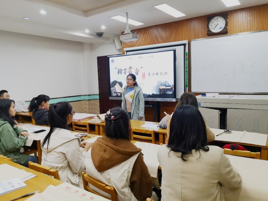文化服务队队长孙毅同学为学员们提醒了一些日常培训事项,她祝愿所有学员能在培训中学有所获,体会到书法的魅力。