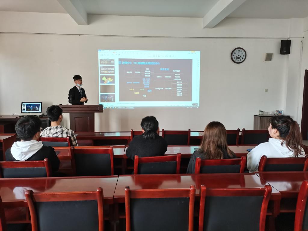 TCL创立于1981年,致力于成为智能产品制造和互联网服务的全球领先企业。产品覆盖电视、手机、冰箱、洗衣机、空调、智能健康电器、液晶面板,业务覆盖金融服务、互联网应用服务、销售及物流服务、投资与创投领域。TCL实业是TCL旗下聚焦智能终端业务及其平台支撑和生态圈业务的智能科技产业集团,极具实力。宣讲会上,招聘专员采用讲解和问答两种方式,先向大家介绍了TCL公司的产品领域、发展历程、业务分布和产业数量等,然后重点介绍了本次招聘的岗位需求、公司的团队建设和人才培养计划,让同学们对该公司有了更加全面具体的了解。最后招聘人员对同学们提出的薪资待遇、具体工作情况及可选报岗位等问题做出了详细回答,并指导大家进行简历投递。