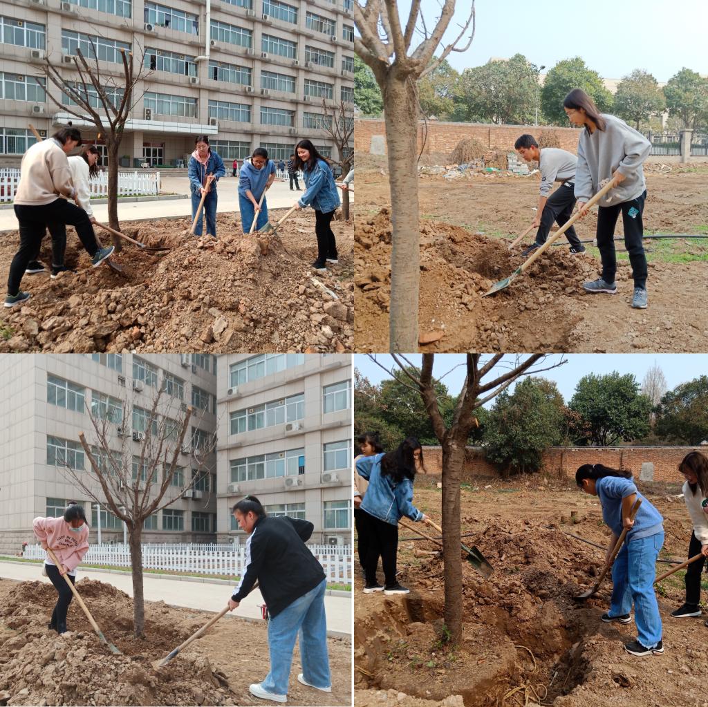 同志们在绿化工人的指导下,手持铁锹开始种树。大家都是第一次种树,但都干的有模有样,或挥锹铲土,堆土围堰,等待生命悄然萌发;或扶苗铲泥,夯土压实,希冀来年春日盛景。同志们三五一组,热火朝天。青春的汗水洒落在希望的泥土之上,未来的期许寄托在勃发的草木之间。在大家齐心协力下,共完成了5棵树苗的种植。