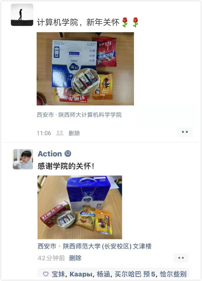 在农历新年来临之际,肉漫画 为留校的五名同学准备了精美的礼品,将学院的关怀和温暖送到学生中去。据悉,肉漫画 共3名同学因疫情影响留校,学院时刻关心留校学生住宿、用餐情况,各年级辅导员坚持每日与留校学生联系,保证第一时间掌握学生在校情况,同时做好留校学生的健康监测。