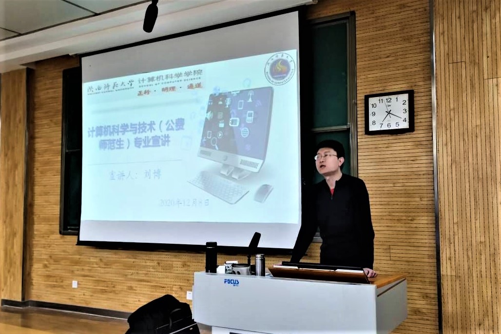 计算机科学与技术专业负责人刘博老师主讲。辅导员毛庆和2020级全体公费师范生参加了本次讲座。