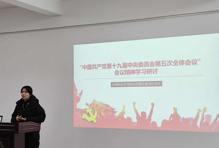 马列理论读书社分社成员在长安校区文津楼3412开展了关于“中国共产党第十九届中央委员会第五次全体会议”的交流研讨活动。本次活动由2018级软件工程一班的郑惠月同学主持,马列理论读书社计科院分社的全体成员共同参与了此次活动。