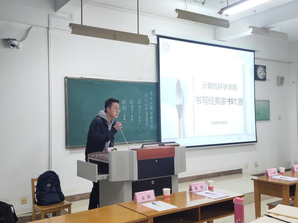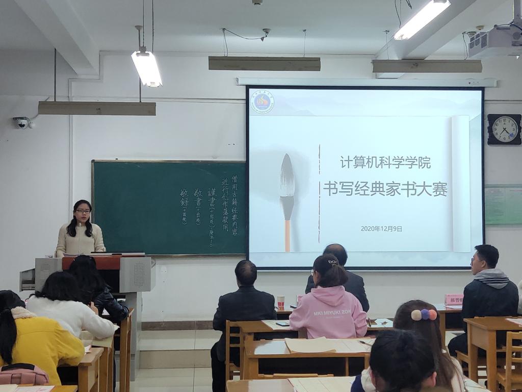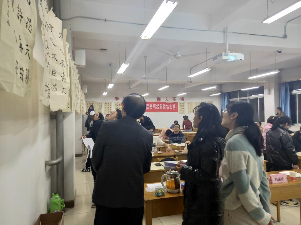于12月9日晚在长安校区文津楼1420教室举办书写经典家书大赛。学院院长王小明、党委书记黄怀平、党委副书记袁冰、团委书记郭康凌、辅导员安琪、“翰墨书香”书法培训班指导老师郝晋暄出席比赛。学院“翰墨书香”书法培训班学员及36名参赛选手参加了比赛。