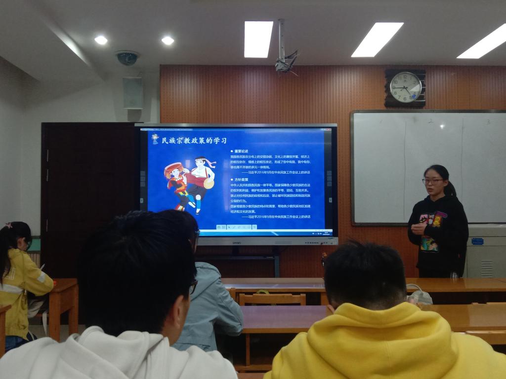 2019级计算机科学与技术2班在文津楼1525教室开展了以民族宗教政策学习为主题的班会活动,班级全体成员参加本次活动,活动由团支部书记周舒桐主持。