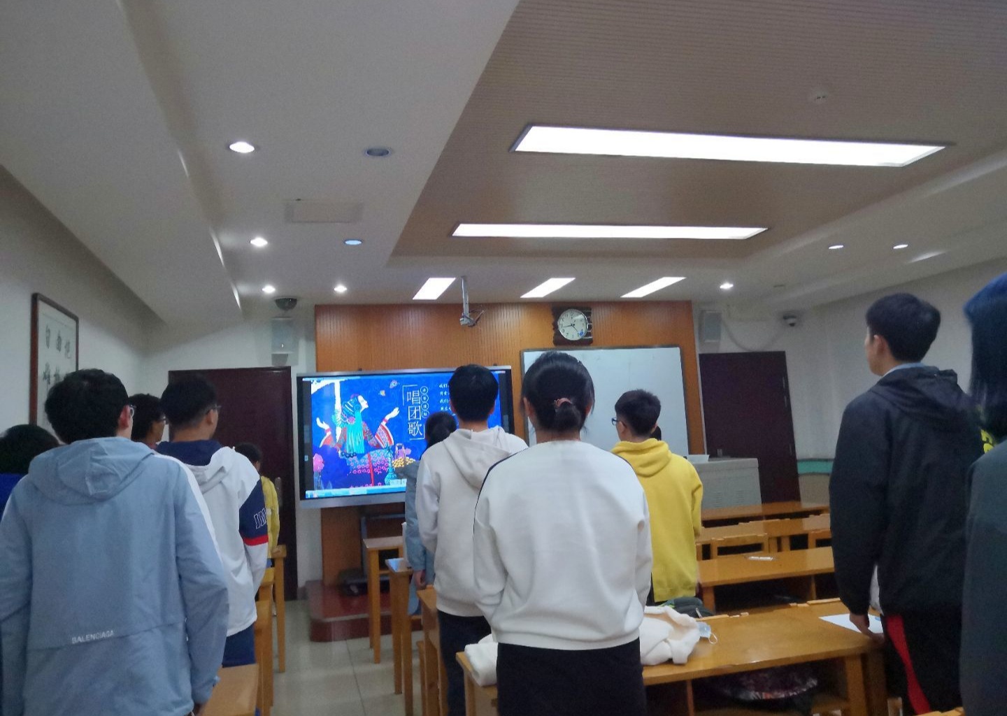 在班委的精心策划与组织下,活动秩序井然。活动第一项,全体起立,齐唱团歌,同学们精神饱满,激情满怀,认识民族团结的重要性,争做维护民族团结的使者,青春嘹亮的团歌声响彻教室。
