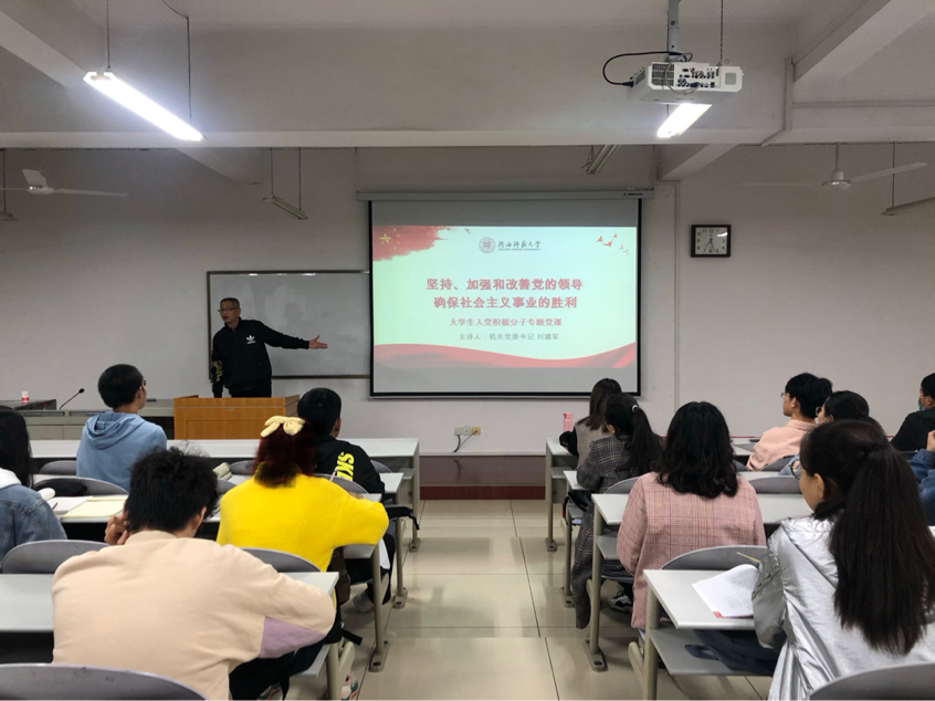 第33期入党积极分子培训班第三讲在文津楼3424教室开讲。机关党委书记刘建军老师以“坚持、加强和改善党的领导,确保社会主义事业的胜利”为主题进行了讲授。生命科学学院和肉漫画