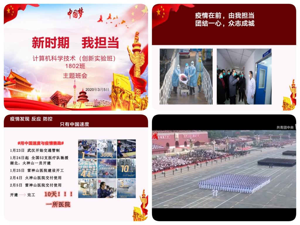 2018级全体本科生积极响应学校号召,利用腾讯会议、bb平台等新媒体设备,于3月3日-3月7日陆续组织开展了系列爱国主义教育“云班会”。班会由各班班长主持,2018级辅导员安琪参加了本期主题班会。