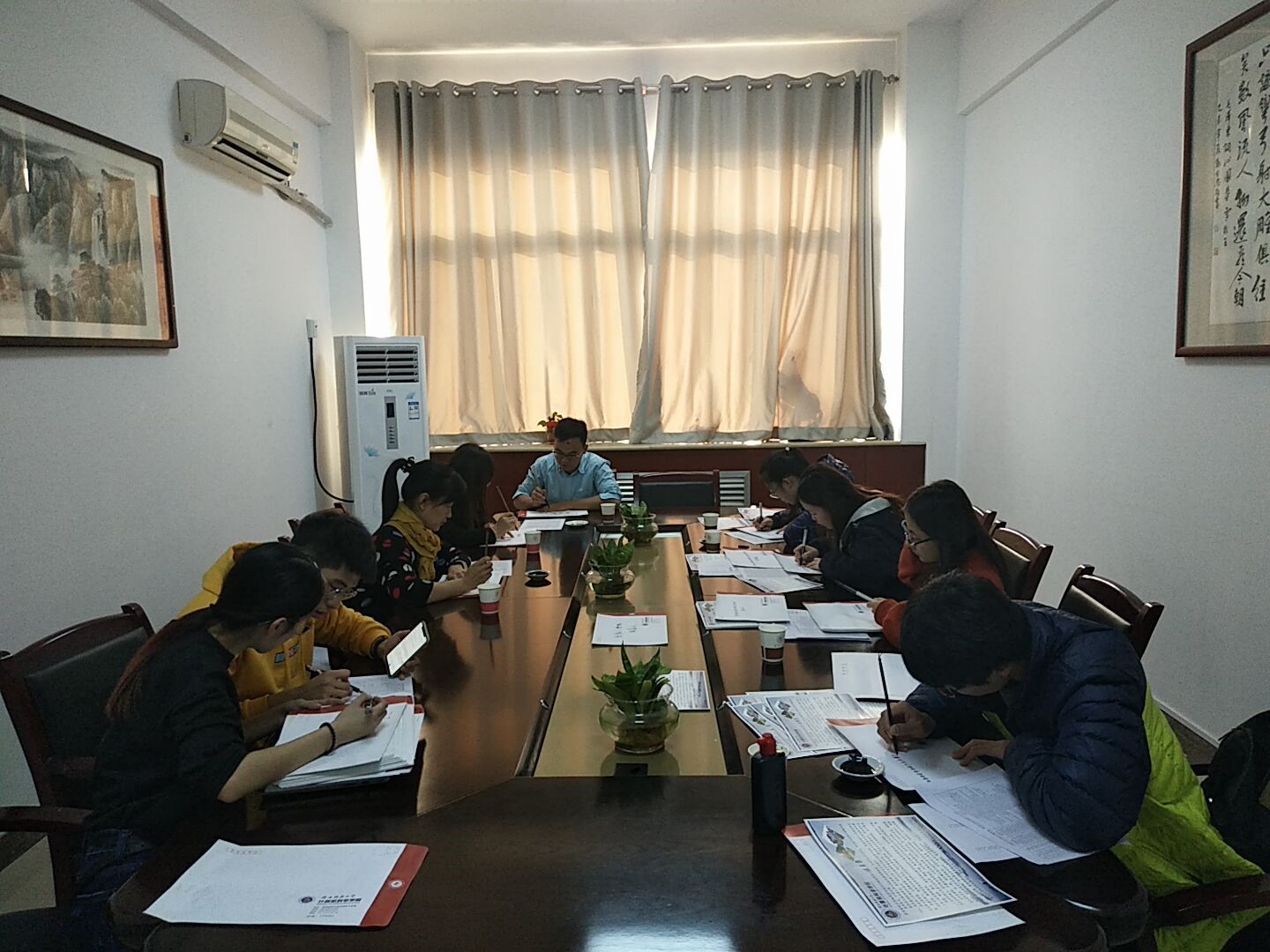 从2019年11月中旬起,学院就开始进行筹备工作,从信件文稿到信封设计,从通联表的收集到信件的发放,各个环节都做了精心准备。学院党委副书记袁冰、团委书记郭康凌、辅导员陈应权与学院翰墨书香书法班的学员们用毛笔写下每位读研学子的地址,肉漫画