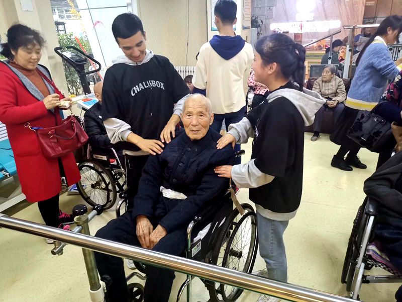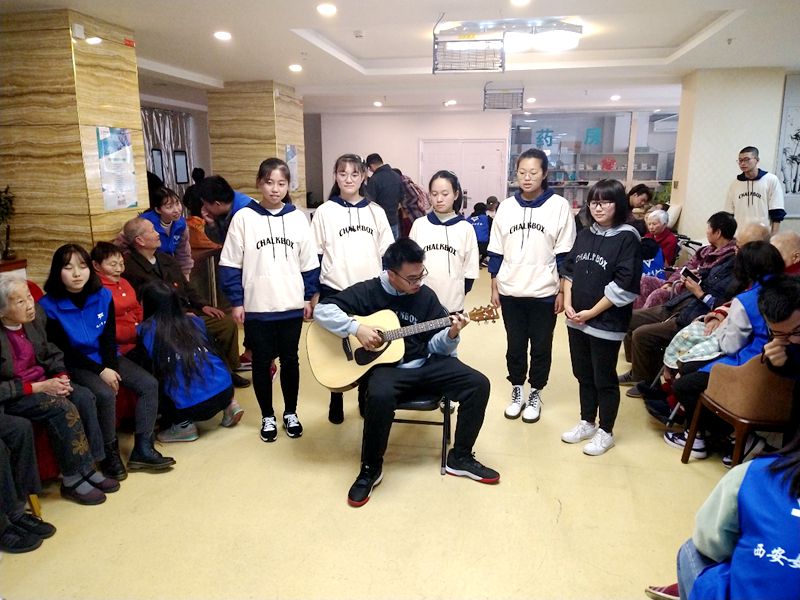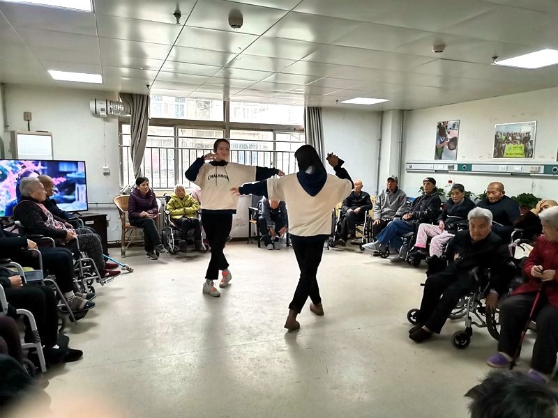 在活动开始前,同学们认真学习了照顾残障老人时的注意事项。在老人们休息时,同学们积极主动帮助护理院后勤工作人员,参与到护理院的多项工作中:在厨房帮忙洗菜切菜,打扫护理院的卫生……在老人们社区活动时,准备了才艺表演节目部分同学在老人面前合唱经典老歌、演奏电子琴、朗诵、相声、跳舞。同学们的热情陪伴让老人们在这个寒冷的冬天感受到了温暖。才艺表演结束后,同学们关切地询问了老人们的身体状况和生活情况,与他们聊起了家常,和他们合影拍照,其乐融融,老人们表示同学的到来为他们的生活增添了生机和乐趣。在老人们的就餐时间,同学们与护理人员一起帮助老人们就餐,对于行动不便的老人,同学们耐心地将饭一口口喂入老人口中,时刻注意老人们的感受。