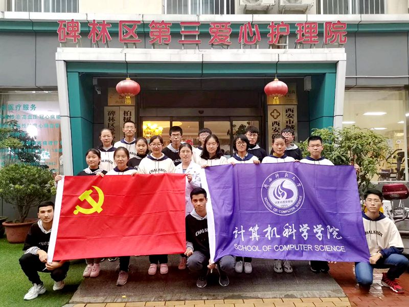 2019级计算机科学与技术1902班同学分为三批,分别在班长文皓彦,团支书杨雪,副班长逄铭杰的带领下前往西安市碑林区第三爱心护理院参加义工志愿服务。