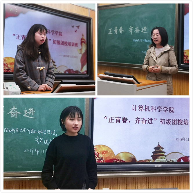 培训开始后,2018、2019级的十二位团支书分别走上讲台,总结了自己上一阶段的工作。2019级的团支书们经过深刻的反思,分析了上一阶段的的团日活动中存在的问题,以及得到的经验教训,如举办外场活动时没有充分考虑到天气和交通因素等。团支书们也分享了班级团日活动中添加的独特元素和采用的创新方式,充分体现了2019级同学作为计算机科学学院新成员的活力与新生代的创造力,展现了2019级共青团员的风采。计类1903班团支书谢强同学说道:“一个好的团日活动的举办,不仅给班委以成就感,更能够增强整个班级的凝聚力。”好的团日活动能够营造好的班风学风,精品团日活动的举办需要每一个班级成员的共同努力。